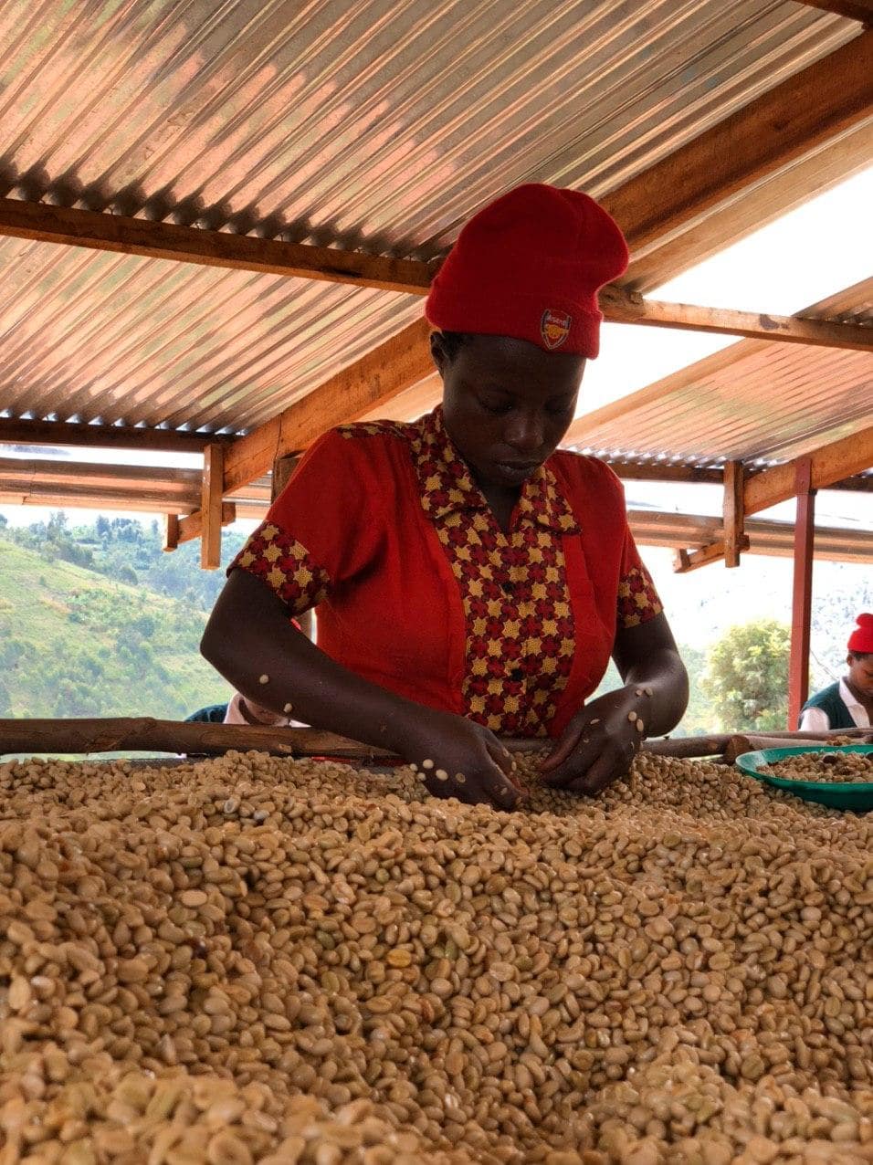 Лот обработан мытым способом. Ягоды предварительно сортируют и депульпируют, затем выдерживают в танках с чистой водой. После чего сушат 15-21 день на африканских кроватях до уровня содержания влаги около 12%.
